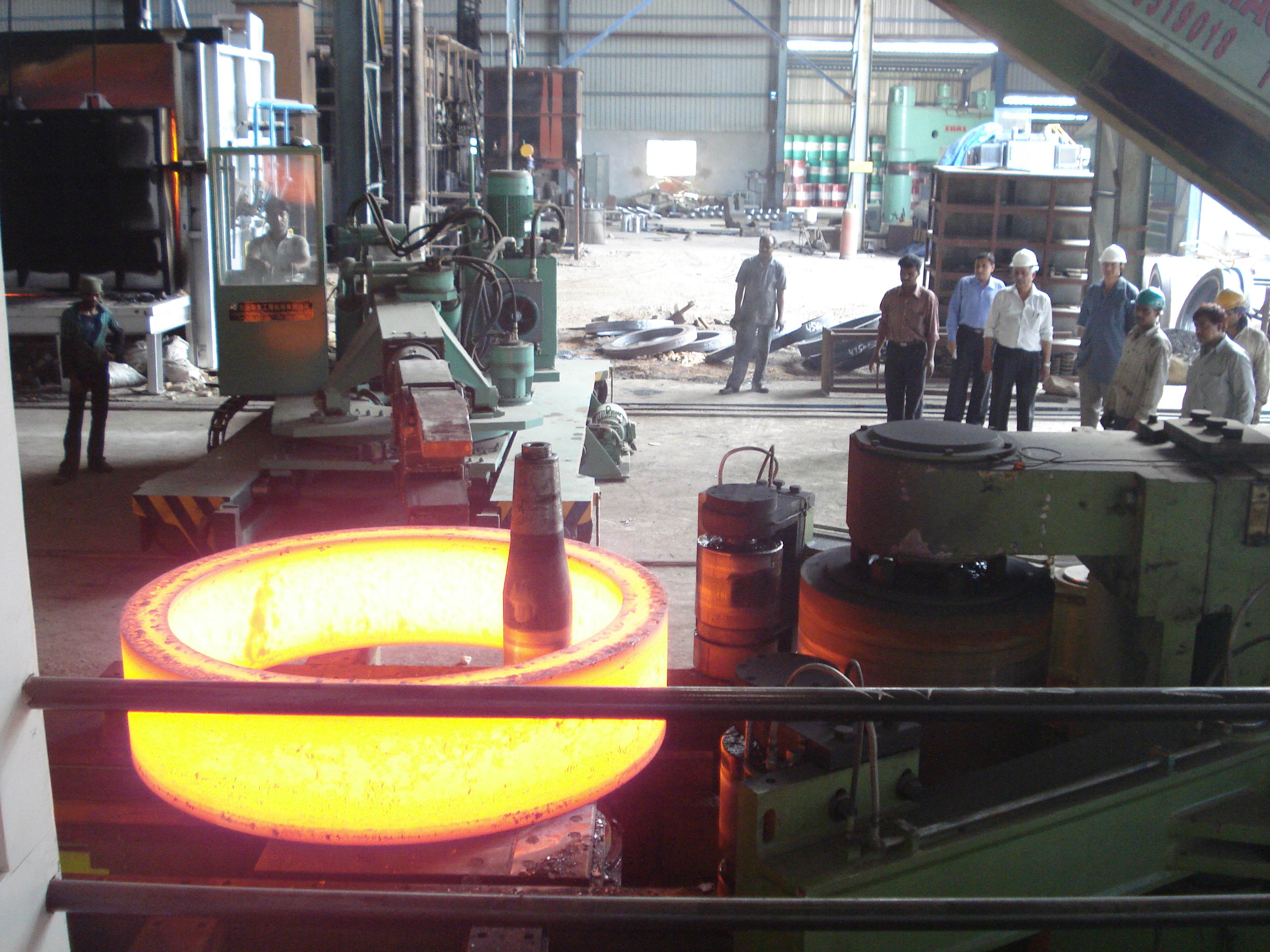 什么是閉式輾環(huán)機(jī)?閉式碾環(huán)機(jī)是將加熱并沖有小孔的坯料套在芯輥上,靠碾壓輥的內(nèi)緣帶動坯料旋轉(zhuǎn),實(shí)現(xiàn)坯料厚度的減薄與直徑的擴(kuò)大。這種工藝方式結(jié)構(gòu)等的限制,已較少采用。產(chǎn)品廣泛應(yīng)用于機(jī)械、汽車、火車、船舶、石油化工、航空、航天、原子能、風(fēng)力發(fā)電等眾多工業(yè)領(lǐng)域。 工作查看詳情 -
